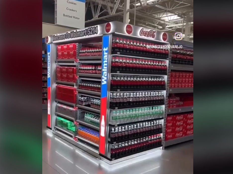 Abaixo, um exemplo dessa parceria em uma loja do Walmart com a Coca-Cola.